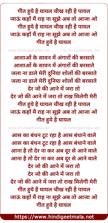 Lyrics of Geet Huye Hai Ghayal Chikh Rahi Hai Payal - गीत हुये है घायल चीख रही है पायल