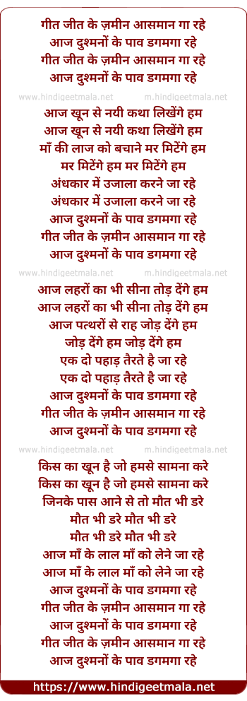 Lyrics of Geet Jeet Ke Zameen Aasman Gaa Rahe - गीत जीत के ज़मीन आसमान गा रहे