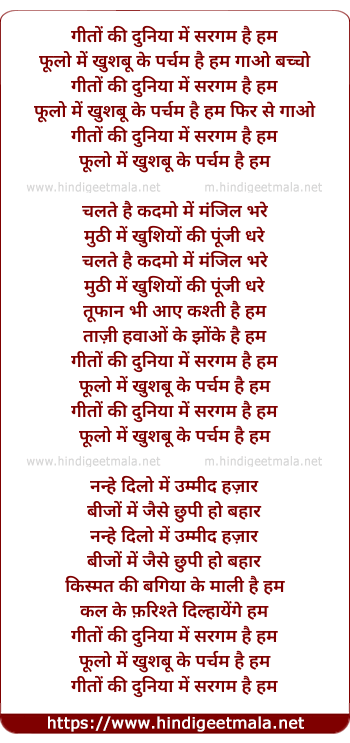 Lyrics of Geeton Ki Duniyaa Me Sargam Hai Hum - गीतों की दुनिया में सरगम है हम