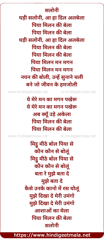 Lyrics of Ghadi Saloni - घड़ी सलोनी