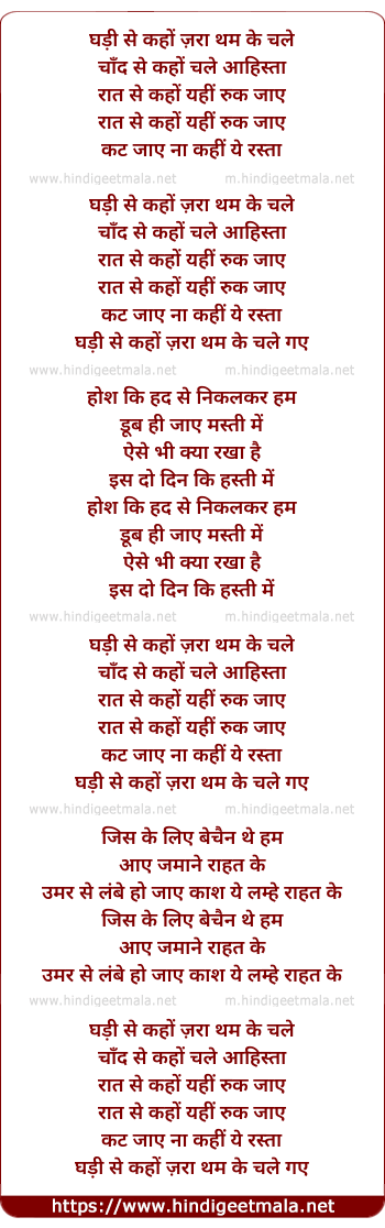 Lyrics of Ghadi Se Kaho Zara - घड़ी से कहों ज़रा