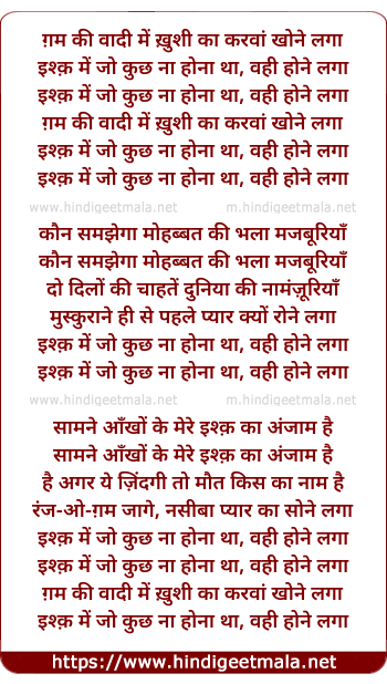 Lyrics of Gham Ki Vaadi Me - ग़म की वादी में