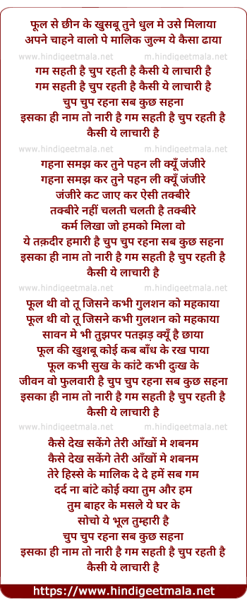 Lyrics of Gham Sahati Hai Chup Rahati Hai - गम सहती है चुप रहती है
