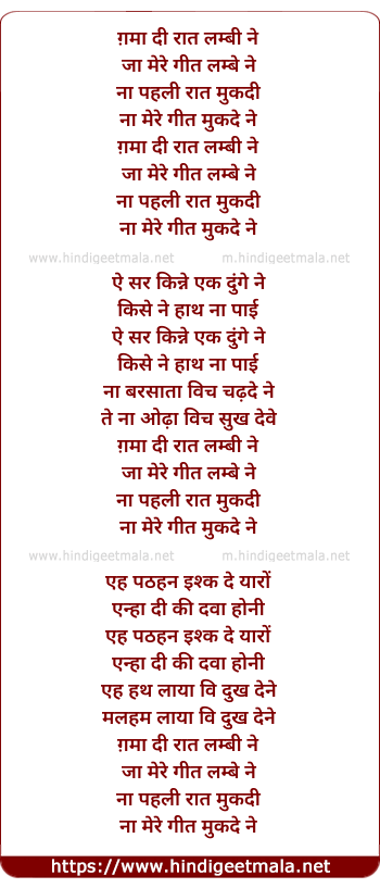 Lyrics of Ghama Di Raat - ग़मा दी रात लम्बी ने