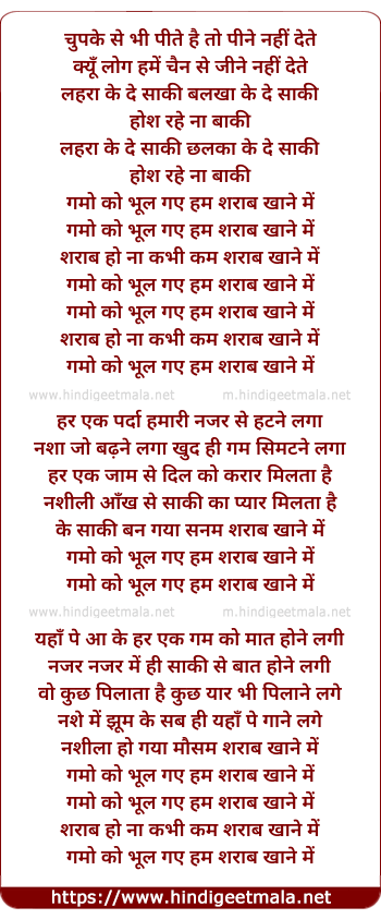 Poetic Translation - Lyrics of Ghamo Ko Bhul Gaye Hum - चुपके से भी पीते है तो पीने नहीं देते