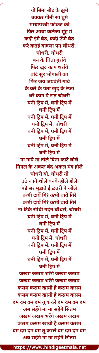 Lyrics of Ghani Trip Me Chaudhari - घनी ट्रिप में चौधरी