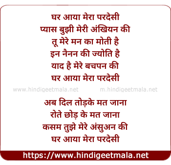 Lyrics of Ghar Aaya Mera Pardesi - घर आया मेरा परदेसी