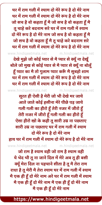 haye ghar me ram gali me shyam do mere rup hai do mere naam