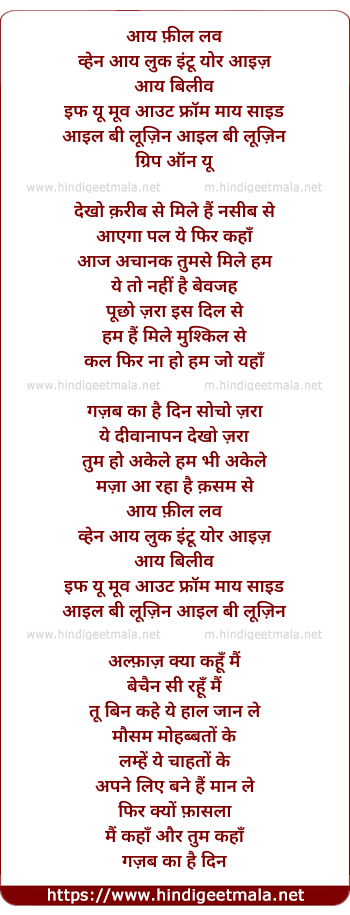 Lyrics of Ghazab Ka Hai Din - ग़जब का है दिन