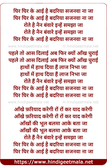 Lyrics of Ghir Ghir Ke Aayi Hai Badariya - घिर घिर के आई है बदरिया