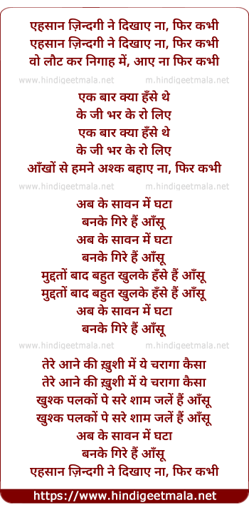ehsaan zindagi ne dikhaye na, phir kabhi