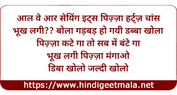 Poetic Translation - Lyrics of Gimme Pizza - गिवमी पिज़्ज़ा