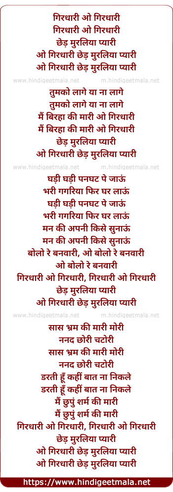 Lyrics of Girdhari O Girdhari Ched Muraliya Pyari - गिरधारी ओ गिरधारी