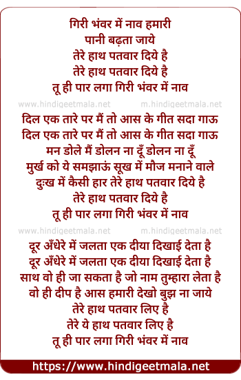 Lyrics of Giri Bhanwar Me Naav Hamari - गिरी भंवर में नाव हमारी