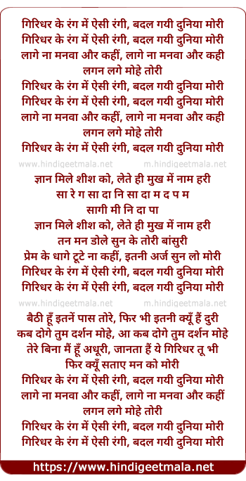 giridhar ke rang me aisi rangi, badal gayi duniya mori