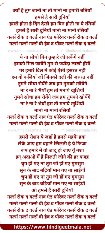 Lyrics of Girls Rock The World, Hamase Hai Saari Duniya - गर्ल्स रोक द वर्ल्ड, हमसे है सारी दुनियाँ