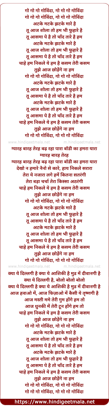 Lyrics of Go Go Govinda - गो गो गोविंदा
