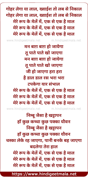 mere rup ke mele me, ek se ek hai maal