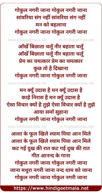 Lyrics of Gokul Nagri Jaana - गोकुल नगरी जाना
