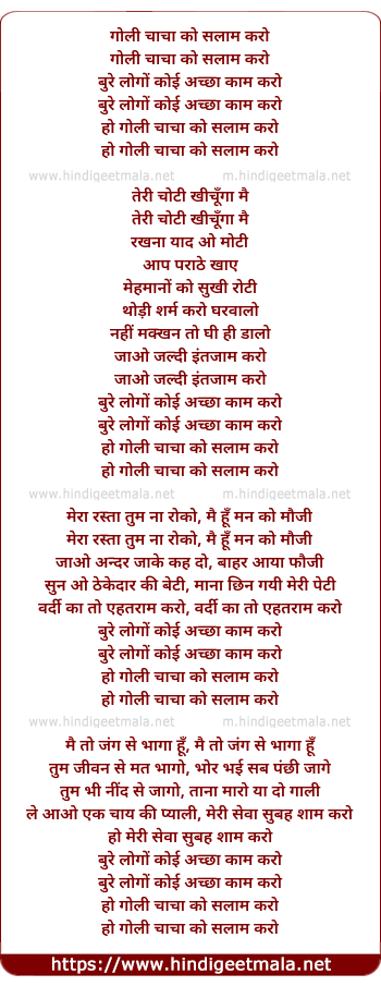 Lyrics of Goli Chacha Ko Salam Karo - गोली चाचा को सलाम करो