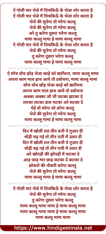 Lyrics of Goli Maar Bheje Me, Mama Kallu Mama - गोली मार भेजे में, मामा कल्लू मामा