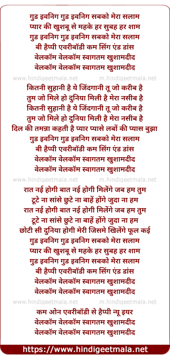 Lyrics of Good Evening Sabko Mera Salaam - गुड इवनिग सबको मेरा सलाम