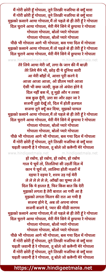 mai gori chori hu gopala, tune tirchi najariya se kyu mara