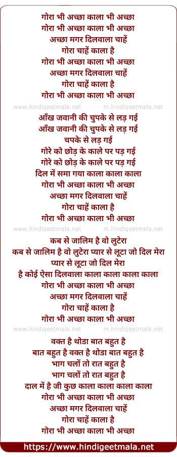 Lyrics of Gora Bhi Achcha Kala Bhi Achcha - गोरा भी अच्छा काला भी अच्छा