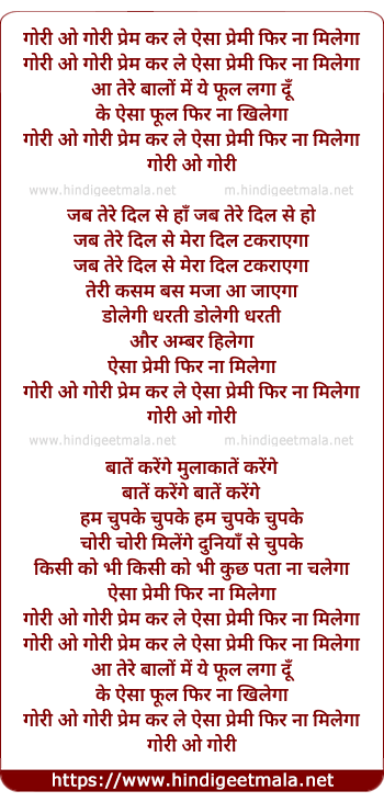 Lyrics of Gori O Gori Prem Kar Le - गोरी ओ गोरी प्रेम कर ले