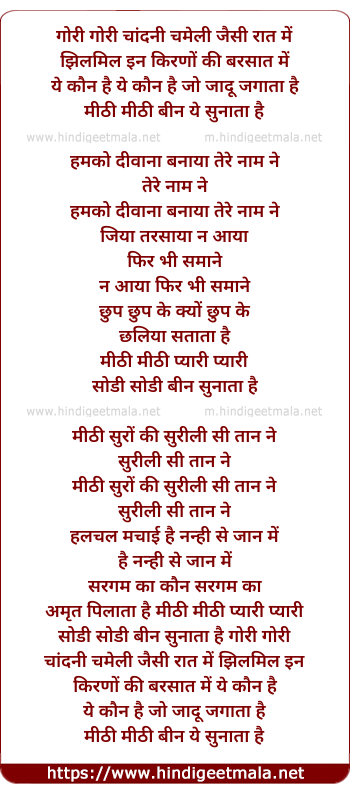 Lyrics of Gori Chandni Chameli Jaisi Raat Me