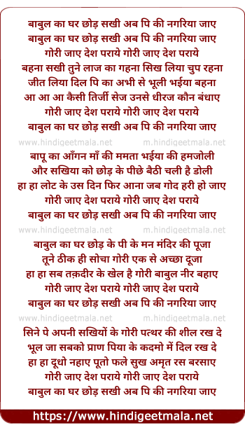 babul ka ghar chhod sakhi ab pi ki nagriya jaye