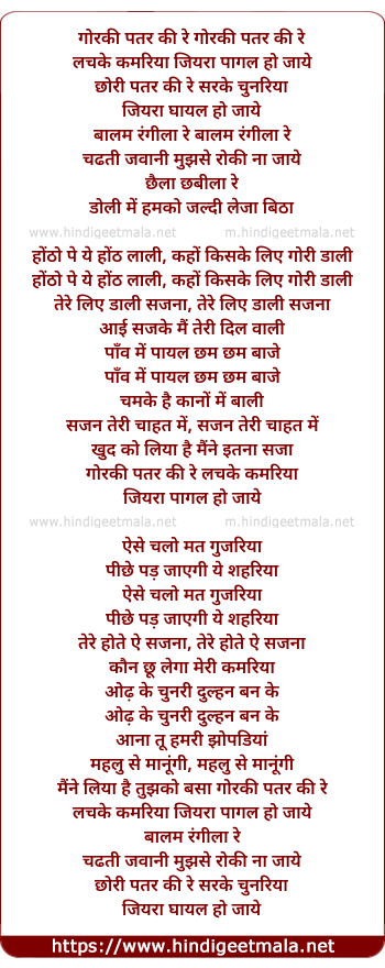 Lyrics of Gorki Patar Ki - गोरकी पतर की