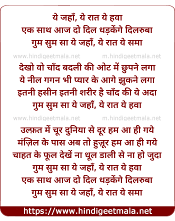 do : gum sum saa ye jahaan, ye raat ye samaa