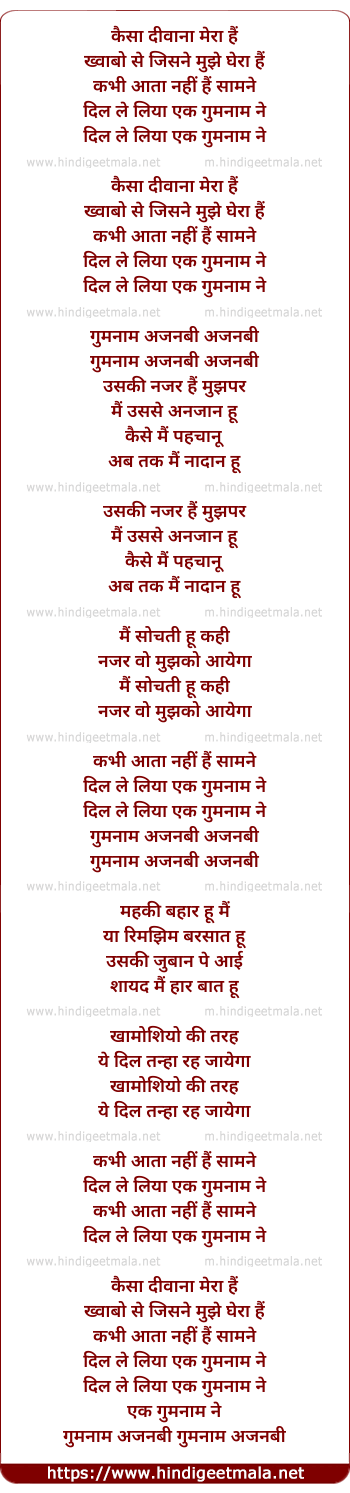 Lyrics of Gumnam Ajnabi Ajnabi - कैसा दीवाना मेरा हैं