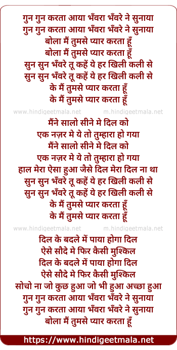 Lyrics of Gun Gun Karta Aaya Bhanwra - गुन गुन करता आया भँवरा