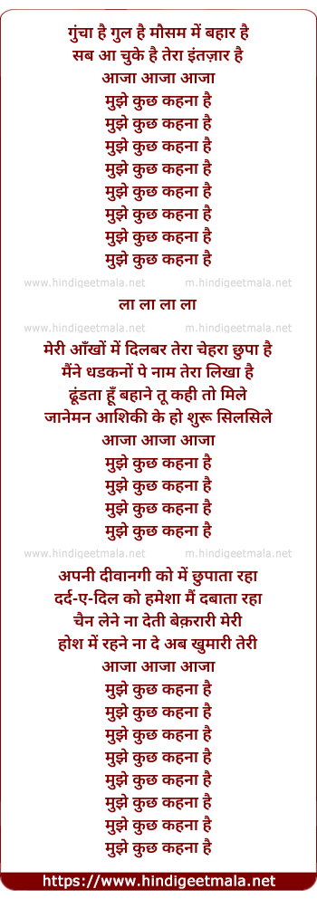 Lyrics of Guncha Hai Gul Hai Mausam Mein Bahar Hai - गुंचा है गुल है मौसम में बहार है