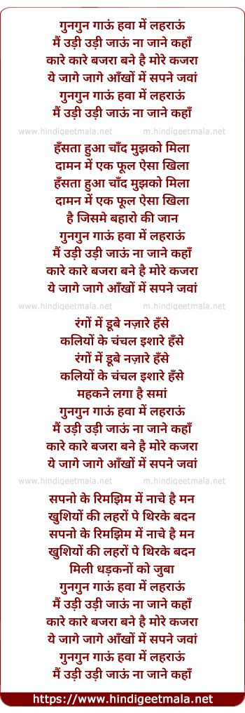 Lyrics of Gungun Gau Hawa Me Lehrau - गुनगुन गाऊं हवा में लहराऊं