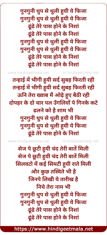Lyrics of Gunguni Dhoop Se Dhuli Huyi Yeh Fiza - गुनगुनी धुप से धुली हुयी ये फिजा