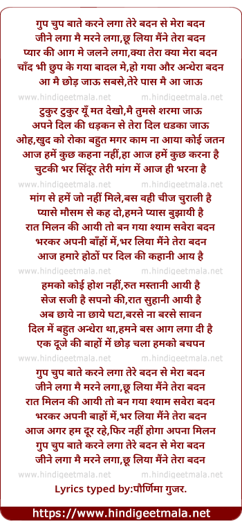 Lyrics of Gup Chup Baate Karne Laga - गुप चुप बाते करने लगा