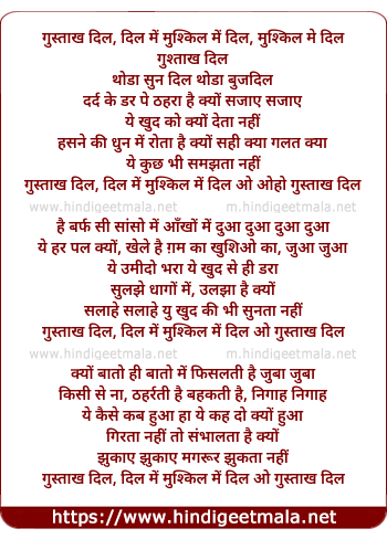 Lyrics of Gustakh Dil, Dil Me Mushkil - गुस्ताख दिल, दिल में मुश्किल