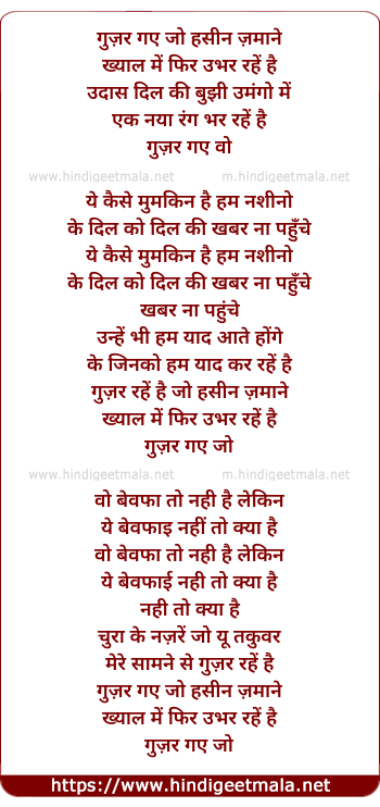 Lyrics of Guzar Gaye Jo Haseen Zamane Khyaal Me Fir Ubhar Rahe Hai - गुज़र गये जो हसीन ज़माने ख्याल में फिर उभर रहें है