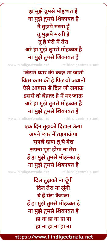 Lyrics of Ha Mujhe Tumse Mohabbat Hai - हाँ मुझे तुमसे मोहब्बत है