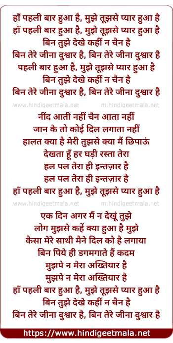 Lyrics of Ha Pehli Bar Hua Hai - हाँ पहली बार हुआ है