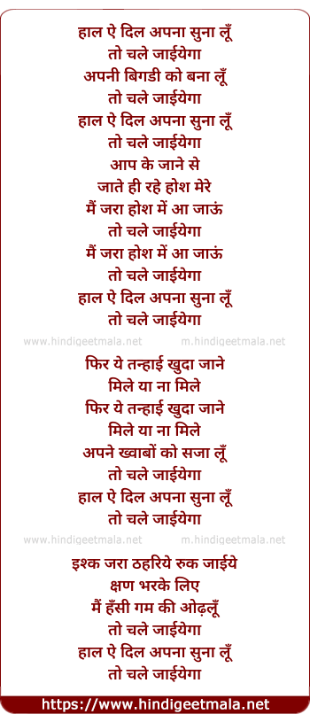 Lyrics of Haal E Dil Apna Suna Lu - हाल ऐ दिल अपना सुना लूँ
