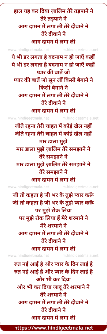 Lyrics of Haal Yah Kar Diya Zalim Tere Tadpane Ne - हाल यह कर दिया ज़ालिम तेरे तड़पाने ने