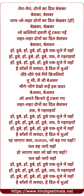 Lyrics of Haan Doobey - हाँ डूबे
