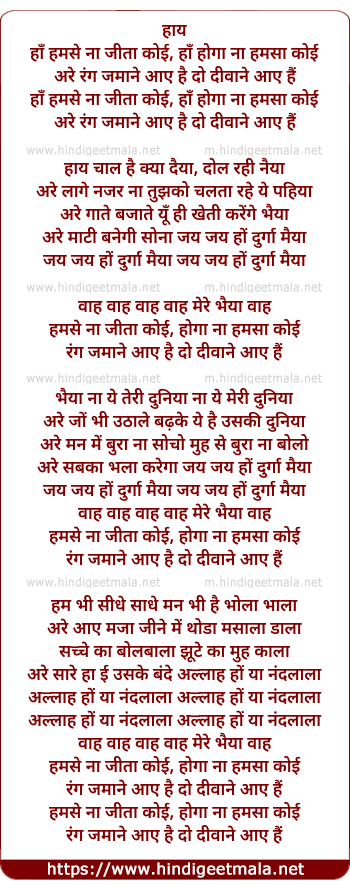 Lyrics of Haan Hamase Na Jita Koyi - हाँ हमसे ना जीता कोई