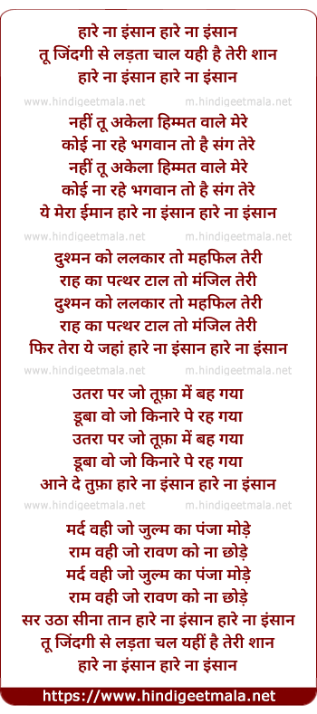 Lyrics of Haare Na Insaan, Tu Jindagi Se Ladta Chal - हारे ना इंसान, तू जिंदगी से लड़ता चल
