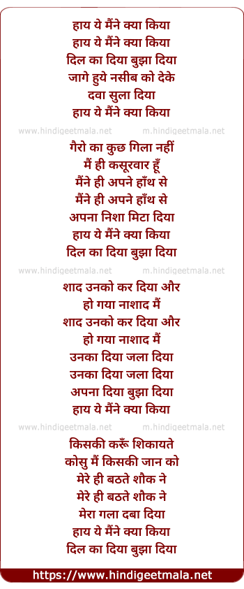 Lyrics of Haay Ye Maine Kya Kiya - हाय ये मैंने क्या किया