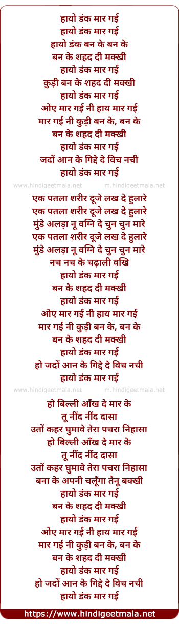 Lyrics of Haayo Dank Maar Gayee - हायो डंक मार गई